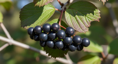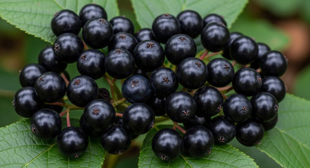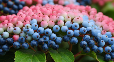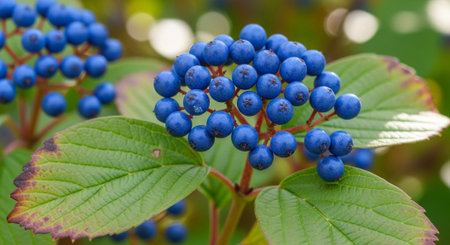 Berries of a Korean spice viburnum bush, Viburnum carlesii