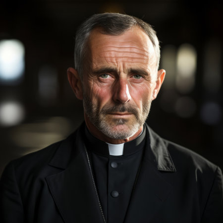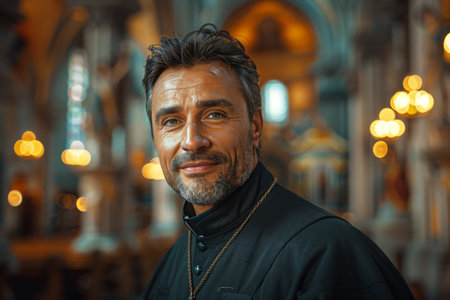 Portrait of a catholic priest looking at the camera in a church