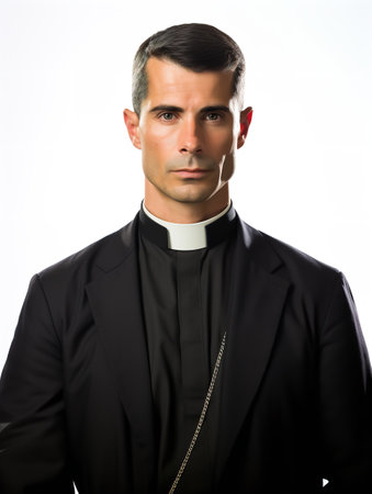 Portrait of priest with pray. Monk man oblation. Senior religion holy male with a confident expression. Isolated.