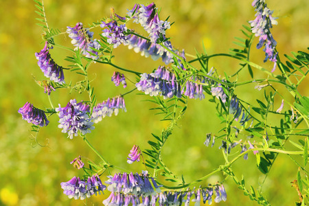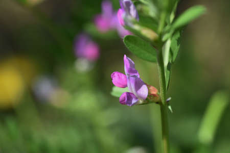 Common vetch flowers. Fabaceae anuual weeds. The flowering season is from March to June.
