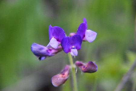 Vertical closeup on the bicolored blue hairy or winter vetch, Vicia villosa