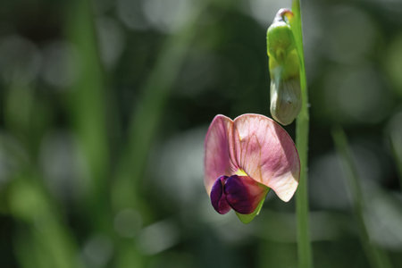 Closeup view of the flat pea or narrow leaved everlasting pea (Lathyrus sylvestris).