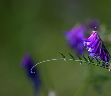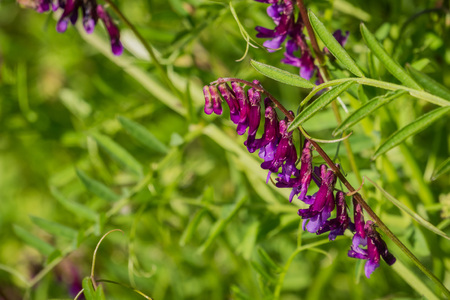 Hairy vetch in bloom close-up view with selective focus on foreground