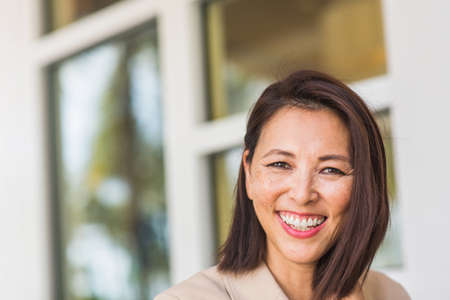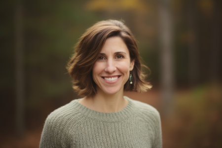 Portrait of a smiling middle-aged woman looking at camera outdoors