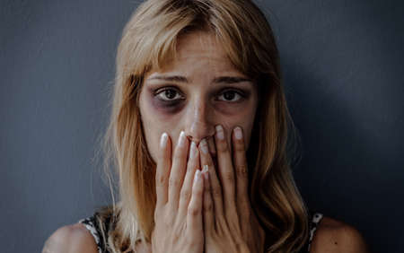 scared woman with bruises under her eyes beating depression abuse