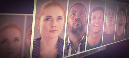 Collage of portraits with different people. Minimal abstract diversity, multi ethnical and racial equality concept. Copy space.