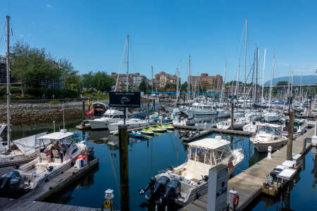 VICTORIA, CANADA - JULY 14, 2019: empty Victoria International Marina on sunny day.