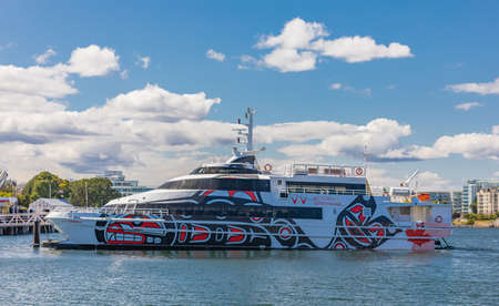 Victoria, Vancouver Island, British Columbia, Canada - August 17, 2021: Water Taxi in Downtown Victoria Harbour during sunny summer day.