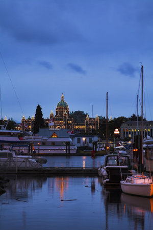 Victoria, British Columbia, CANADA - September 17, 2011 : Night view of Inner Harbour in Victoria, British Columbia, CANADA