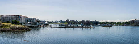 VICTORIA, CANADA - JULY 14, 2019: historic neighbourhood of the city commonly called Vic West across upper Harbour
