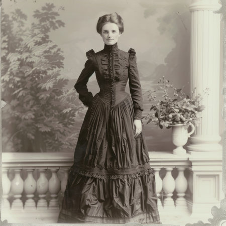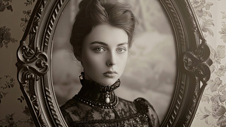 Sepia-toned vintage portrait of an elegant young woman, showcasing historical fashion and timeless beauty. Ideal for heritage, nostalgia, or documentary projects requiring an authentic antique feel.