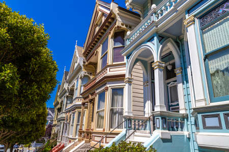 SAN FRANCISCO, USA - MARCH 29, 2020: The Painted Ladies - Victorian houses in San Francisco, California, USA