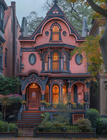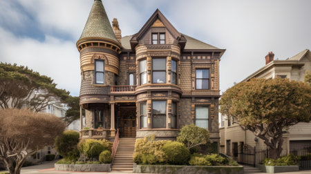 classic victorian house, with intricate exterior details and painted accents, in vibrant neighborhood, created with generative ai