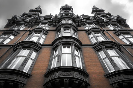 The ornate architecture of the old building exudes elegance and history generated by artificial intelligence