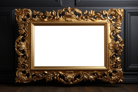 Ornate vintage gold artwork frame mockup, blank empty classic painting frame on the wall, closeup shot