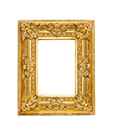 Gold frame for a picture in a classic baroque style on a white blank background.