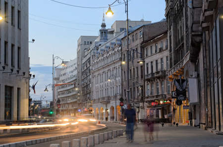Night street scene in Bucharest old city.