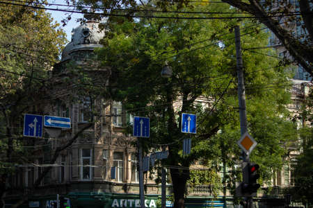 Bucharest, Romania, 8 November 2020 - Old buildings on Nicolae Balcescu (previously known as Gheorghe Magheru) boulevard in Bucharest, Romania, in a sunny autumn day