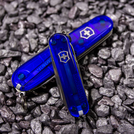 Ibach, Switzerland 02.02.2020 - Two blue Swiss Army knife Victorinox