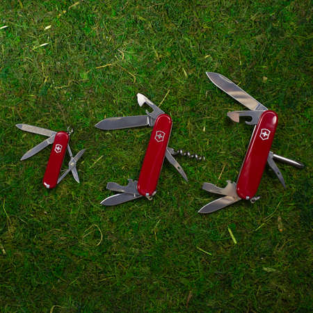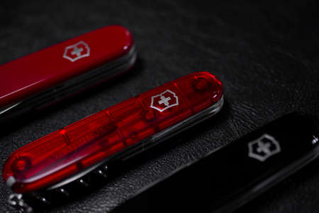 Ibach, Switzerland 02.02.2020 - three differernt Swiss Army knife Victorinox