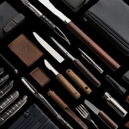 Knives and tools collection on dark background