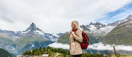 woman looking at the beautiful Mount Matterhorn in the Swiss Alps