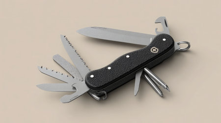 This image features a versatile multi-tool with various blades and tools, perfect for outdoor adventures and everyday tasks, showcasing its practicality and compactness.