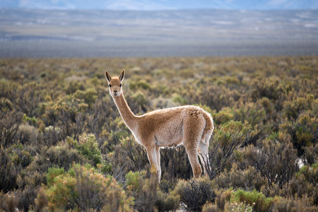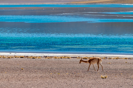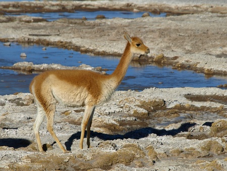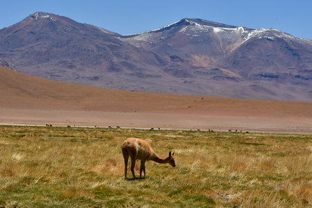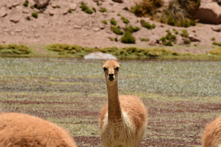 The vicuna (Lama vicugna) in the Altiplano landscape in Chile