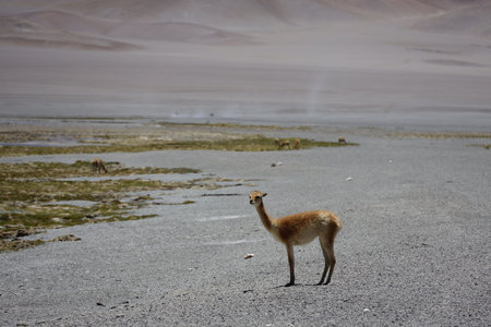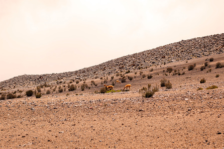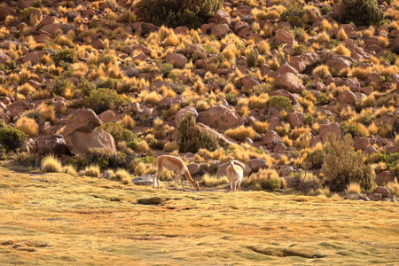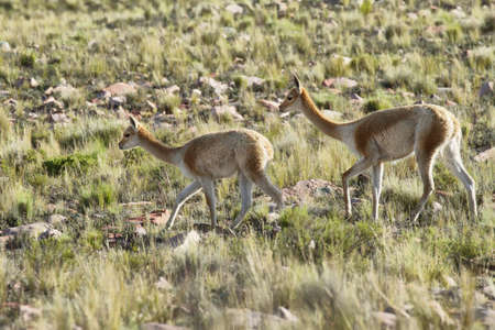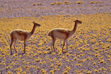 Wild vicunas on the Altiplano in Northern Chile, South America