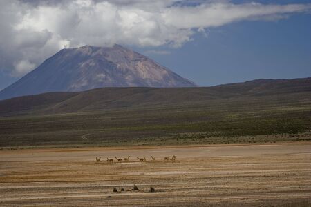 Vicunas Vicugna vicugna in Lauca National Park. Arica y Parinacota Region. Chile.