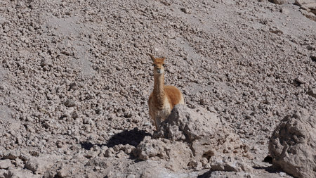 Portrait of Wild Vikunja in Atacama desert Chile South America