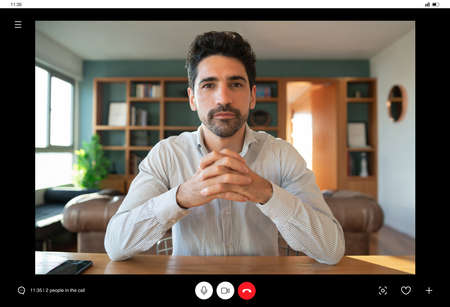 Business man on a work video call from home.