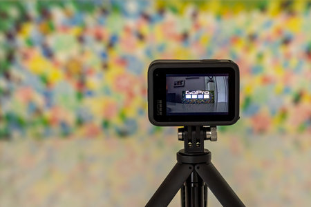 Frankfurt, Germany - 20th September 2021: A german photographer bought the all new GoPro Hero 10 action camera, unboxing the bundle with additional equipment.