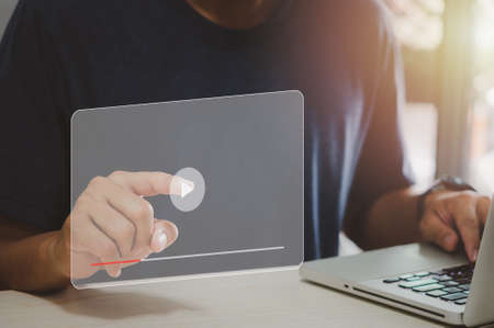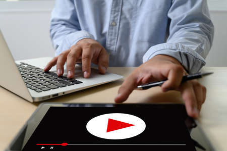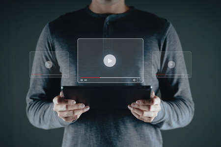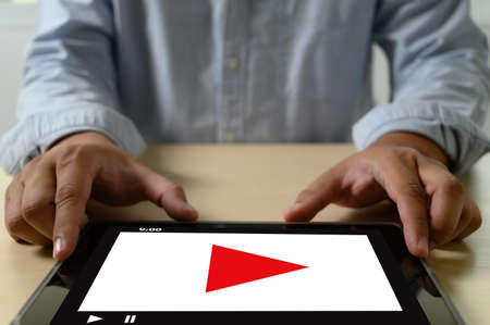 Man using tablet for watching video on internet, online streaming, online class, content creator