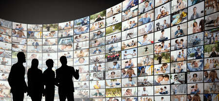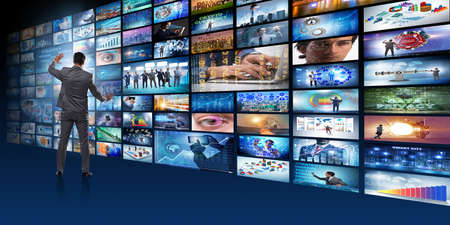 Broadcasting Concept. Digital wall with different channels and people