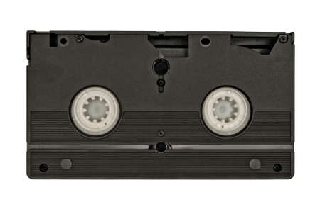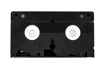 Retro videotape on white background, close-up isolate.