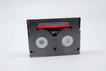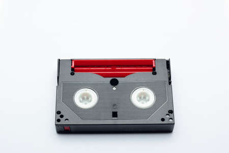 Small old black MiniDV format video cassette, isolated on white background