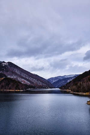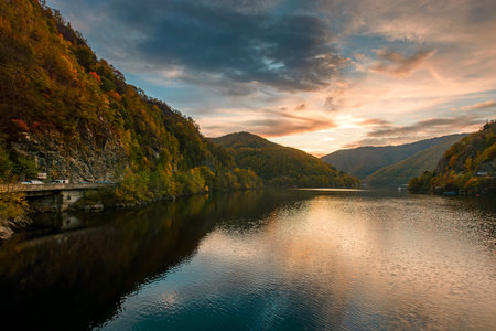 Artificial Lake behind the Bicaz Dam at sunset, Romania