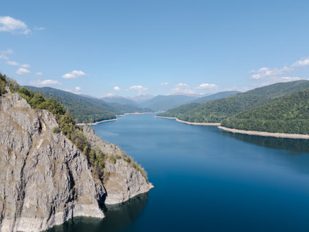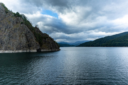 Landscape of Lake Vidraru (Lacul Vidraru). View from Vidraru dam in Fagaras Mountains. Transfagarasan road, Romania.