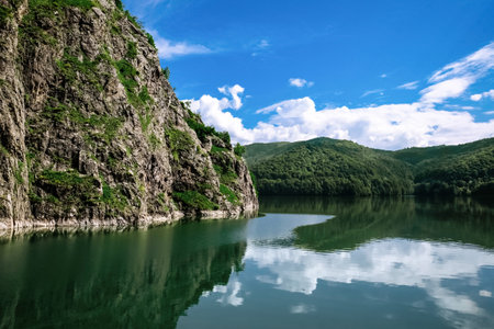 Landscape of Vidraru Lake in Fagaras Mountains, ArgeÈ™ County, Transfagarasan road, Romania.