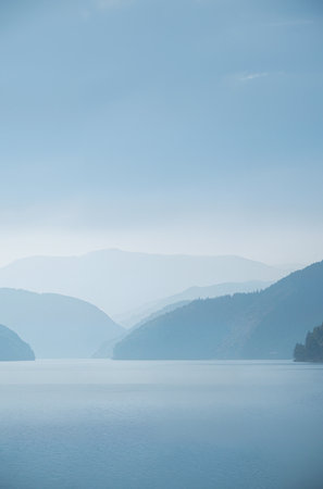 Landscape view of misty fjord in Norway Scandinavia Europe