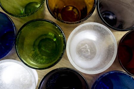 series of colored glasses with top view
