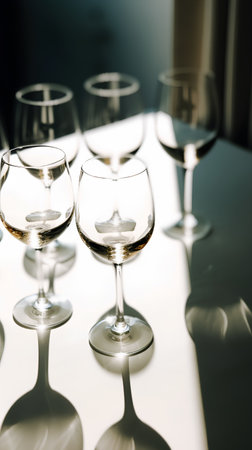 glassware dropping shadows on white surface