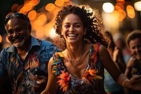 Indigenous cultures celebrate traditional festivals with multi colored decorations and dancing generated by artificial intelligence
