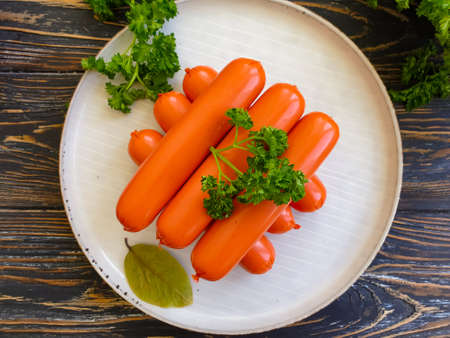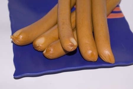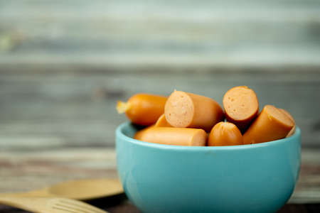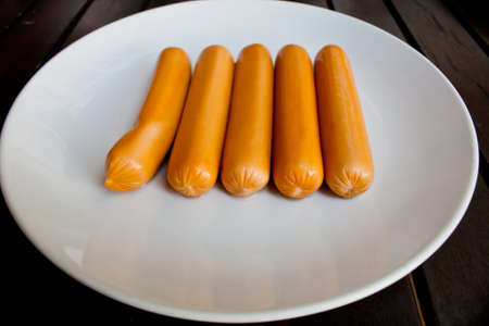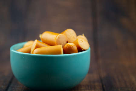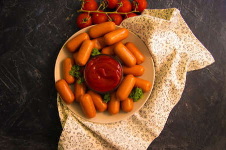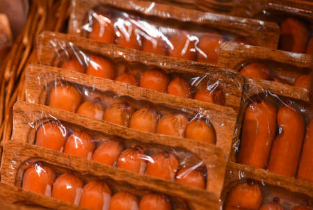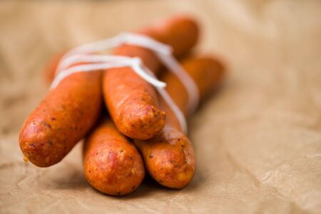 Sausage in small size. Sausage for a snack. Processed meat made from pork