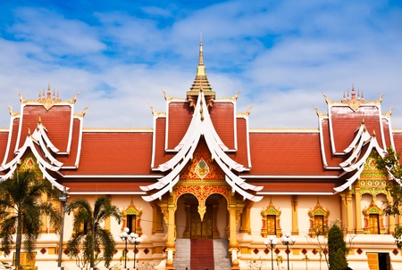 The most beautiful Viewpoint Architecture at Pha That Luang Temple in Vientiane, Laos