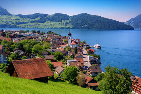 View of the beautiful lake Vierwaldstattersee, Gersau Switzerland
