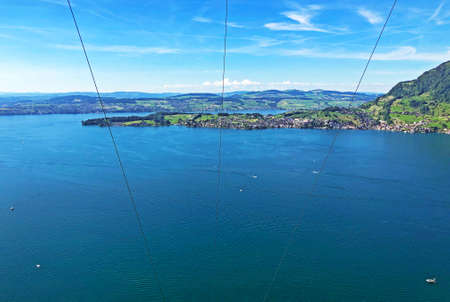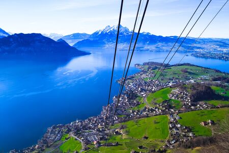 Panaramic skyline view of Weggis, Vierwaldstattersee, Lake Lucern, Switzerland, taken from inside a cable lift cabin.
