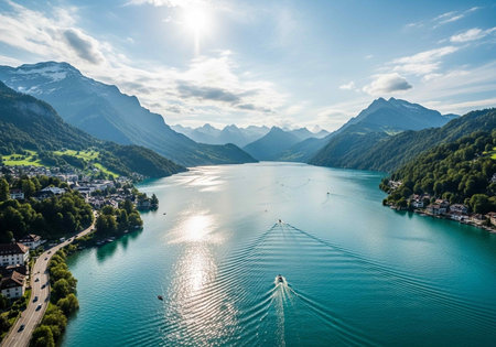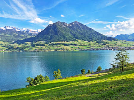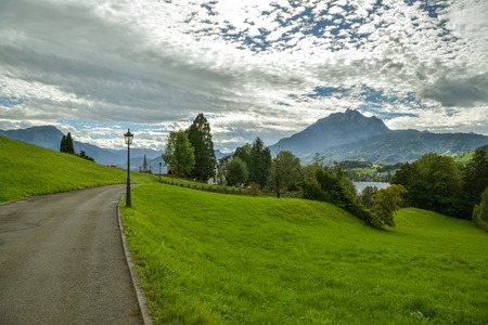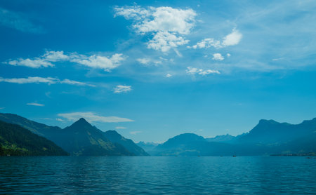 Picturesque landscape with Lake Lucerne and the Alps mountains, Switzerland