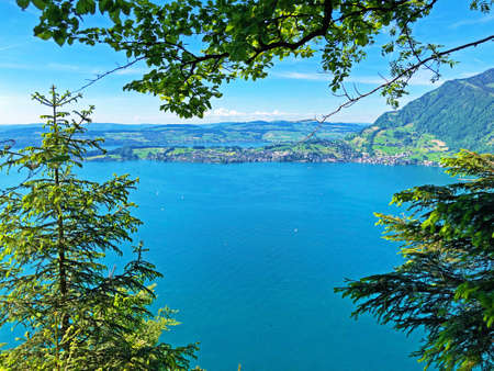 View of the Lake Luzerne or Vierwaldstättersee (Vierwaldstaettersee oder Vierwaldsattersee) from the Bürgenberg mountain, Obbürgen (Obburgen or Obbuergen) - Canton of Nidwalden, Switzerland